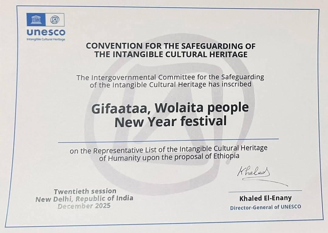 • Inscripción en 2025: El Gifaataa, festival de Año Nuevo del pueblo Wolayta (Etiopía), fue inscrito en 2025 en la Lista Representativa del Patrimonio Cultural Inmaterial de la Humanidad de la UNESCO (referencia 02315).